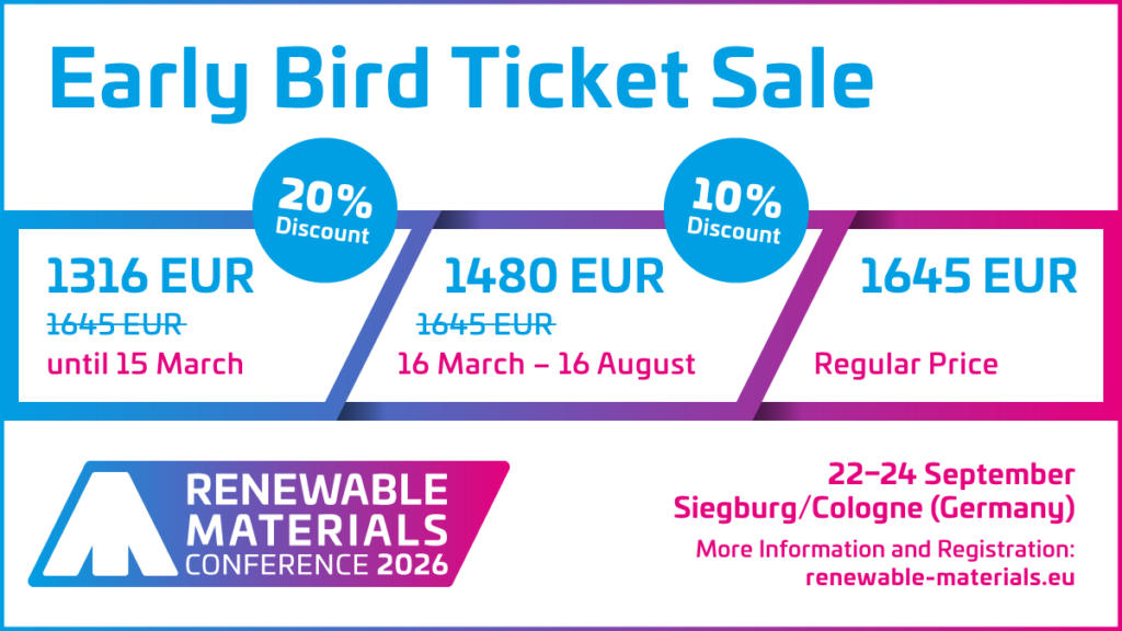 20% Early Bird: Renewable Materials Conference 2026, 22- 24 September, Cologne (Germany)